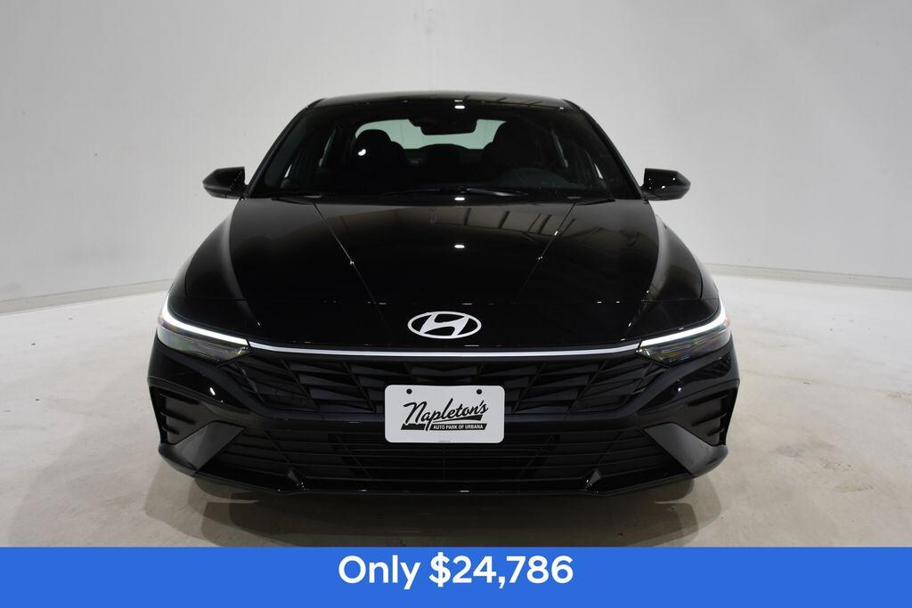 Price includes: $750 - Sales Event Cash. Exp. 01/02/2026 Abyss Black This Elantra SEL Sport is nicely equipped with Alloy wheels, Apple CarPlay & Android Auto, Auto High-beam Headlights, Automatic temperature control, Brake assist, Exterior Parking Camera Rear, Front dual zone A/C, Fully automatic headlights, Power door mirrors, Power windows, Remote keyless entry, Security system, Speed control, 4-Wheel Disc Brakes, 6 Speakers, ABS brakes, Air Conditioning, All-Season Fitted Liners, AM/FM radio, Bumpers: body-color, Cargo Tray, Carpeted Floor Mats, Center Console Tray, Delay-off headlights, Driver door bin, Driver vanity mirror, Dual front impact airbags, Dual front side impact airbags, Electronic Stability Control, First Aid Kit, Front anti-roll bar, Front Bucket Seats, Front Center Armrest, Front reading lights, Front wheel independent suspension, Illuminated entry, Low tire pressure warning, Occupant sensing airbag, Outside temperature display, Overhead airbag, Overhead console, Panic alarm, Passenger door bin, Passenger vanity mirror, Power steering, Premium Cloth Seat Trim, Radio: AM/FM/HD Display Audio, Rear side impact airbag, Rear window defroster, Speed-sensing steering, Spoiler, Steering wheel mounted audio controls, Tachometer, Telescoping steering wheel, Tilt steering wheel, Traction control, Trip computer, Variably intermittent wipers, and Wheels: 17" x 7.0J Alloy Gloss Black w/Dark Finish.