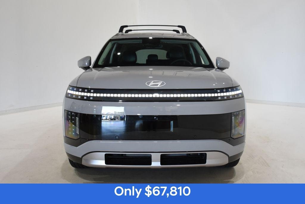 Cyber Gray This IONIQ 9 SEL is nicely equipped with Active Cruise Control, Alloy wheels, Apple CarPlay & Android Auto, Auto High-beam Headlights, Automatic temperature control, Brake assist, Front dual zone A/C, Fully automatic headlights, Garage door transmitter: HomeLink, harman/kardon® Speakers, Heated door mirrors, Heated front seats, Heated rear seats, Heated steering wheel, Navigation System, Power door mirrors, Power driver seat, Power Liftgate, Power passenger seat, Power windows, Rain sensing wipers, Remote keyless entry, Security system, Ventilated front seats, 20" x 8J Alloy Wheels, 3rd row seats: split-bench, 4-Wheel Disc Brakes, 8 Speakers, ABS brakes, Air Conditioning, AM/FM radio: SiriusXM, Auto-dimming Rear-View mirror, Auto-leveling suspension, Bodyside moldings, Bumpers: body-color, Cargo Cover, Carpeted Floor Mats, Delay-off headlights, Driver door bin, Driver vanity mirror, Dual front impact airbags, Dual front side impact airbags, Electronic Stability Control, Four wheel independent suspension, Front anti-roll bar, Front Bucket Seats, Front Center Armrest, Front reading lights, H-Tex Leatherette Seating Surfaces, Illuminated entry, Leather steering wheel, Low tire pressure warning, Occupant sensing airbag, Outside temperature display, Overhead airbag, Overhead console, Panic alarm, Passenger door bin, Passenger vanity mirror, Power steering, Radio: AM/FM/SiriusXM/HD Audio System, Rear air conditioning, Rear anti-roll bar, Rear reading lights, Rear seat center armrest, Rear side impact airbag, Rear window defroster, Rear window wiper, Reclining 3rd row seat, Speed control, Split folding rear seat, Spoiler, Steering wheel mounted audio controls, Telescoping steering wheel, Tilt steering wheel, Traction control, Trip computer, Turn signal indicator mirrors, and Variably intermittent wipers.